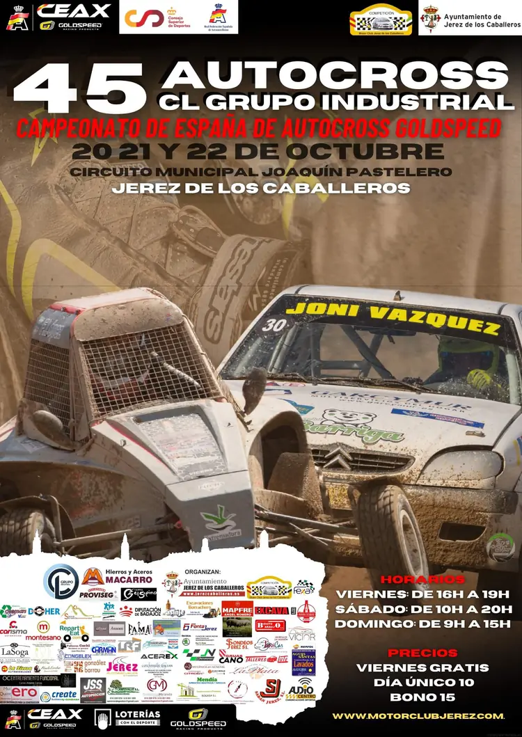 El Campeonato de España de Autocross CEAX Goldspeed cerraba el pasado mes de octubre la temporada correspondiente al año 2023 después de su paso por siete trazados, comenzando en mayo con la cita en el circuito Eduardo Lalana de Esplús (Huesca) para continuar en el Cerro Negro de Talavera de la Reina (Toledo) en junio y en el municipal de Carballo (A Coruña) en julio. El ecuador lo marcaba en agosto la carrera del circuito José Ramón Losada en Arteixo (A Coruña) para seguir en el Antonio Vadillo de Miranda de Ebro (Burgos) en septiembre donde a finales de este mismo mes se celebraba la siguiente en el Parc de la Serra de Mollerussa (Lleida), coincidiendo con el fin de semana que cambiaba a octubre, en el cual concluía con la de Jerez de los Caballeros (Badajoz) en el Joaquín Pastelero.